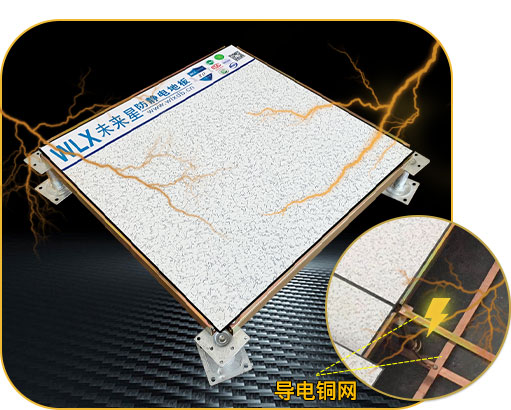 貼面經過抗靜電專利技術研發,填充物增加降阻劑,系統電阻達到國家標準:1.0*10^6Ω-1.0*10^9Ω,通過接地導電銅網,快速釋放房間靜電。